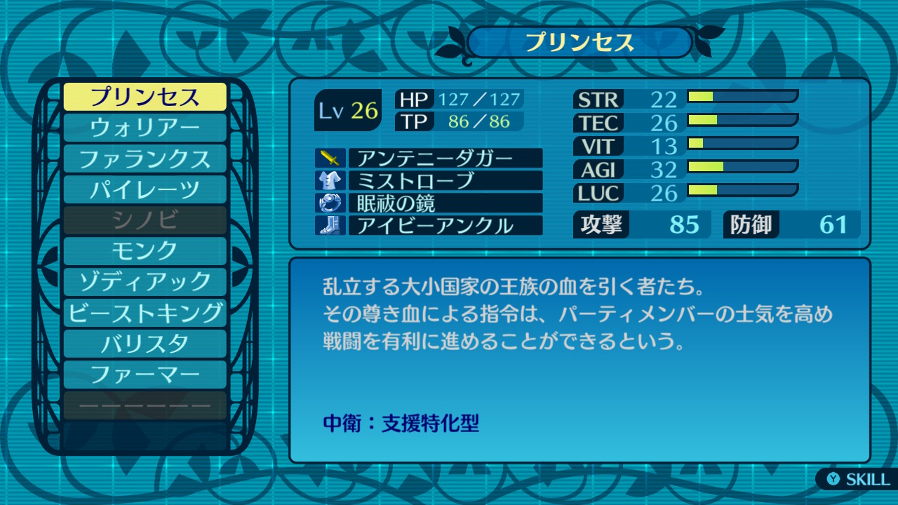クロウ →ウォリアー/バリスタ(命中補助+前陣やりたい。チェイススラストもあるし)